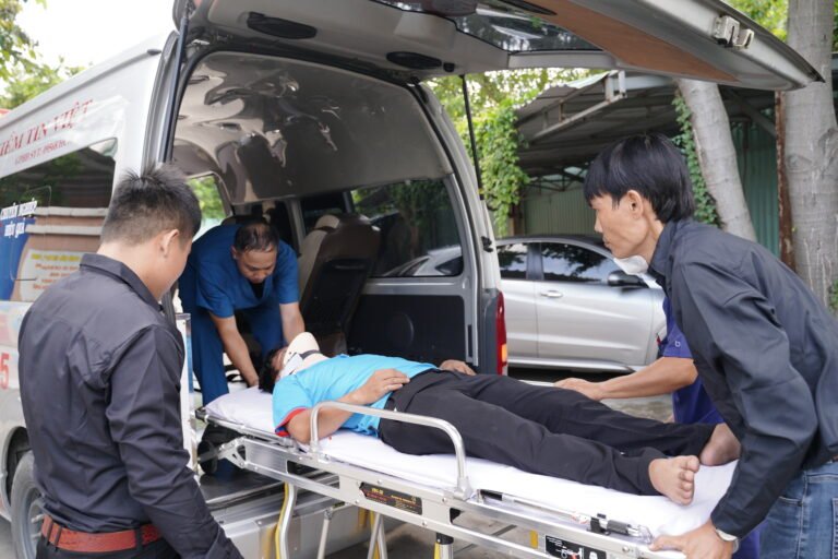 Phản ứng trong 5 phút – điều xe cứu thương đến tận nơi 24/7. Xe đạt chuẩn, có nhân viên y tế đi kèm, thiết bị cấp cứu đầy đủ.